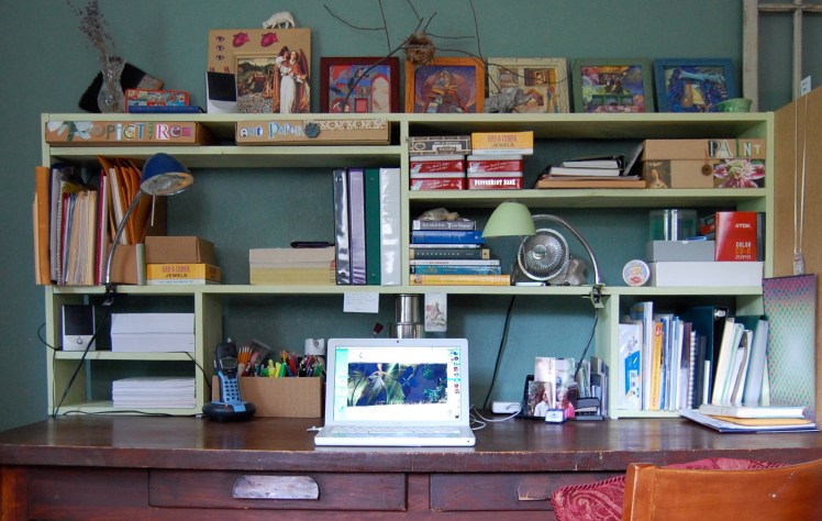 Giggle, giggle. How often have I tried to organize or reorganize my art room/office. It hink yours looks darned good and I’ll be curious to see how you can improve on it!