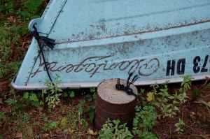 Whoa. Back to today. I knocked on the door. I could picture the kitchen on the other side. The bird models I built and painted for my grandma were on the cookbook shelf in the kitchen. No one was home, though. We took the liberty of walking about the property for what I think will be the last time. My rowboat was still there, with the anchor my grandpa made. My grandpa made everything he possibly could!