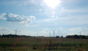 Back to Sunday. We walked around half of the lake, the dog was tired, we got in the car and drove home. It was a great end to the weekend. While Timothy drove, I took pictures out of the car window. To see this field of windmills, that stretched as far as I could see over the horizon, gave me hope for our future.